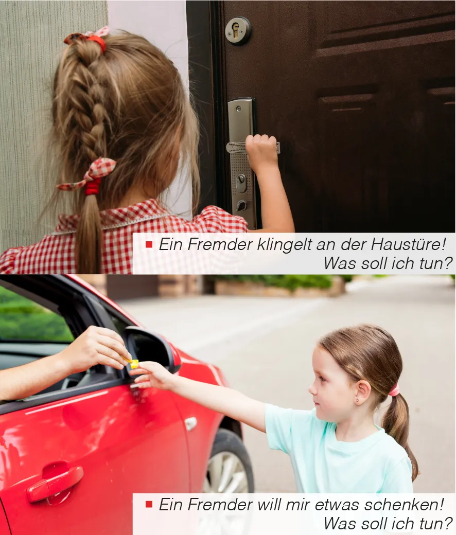 „Was mache ich, wenn mich Fremde ansprechen? Nehme ich den hellen Weg oder die dunkle Abkürzung? Dort kommen Leute. Wechsel ich die Straßenseite? Ich brauche Hilfe! Wen spreche ich wie an?“ Mögliche Gefahren frühzeitig wahrzunehmen und zu erkennen ist Ziel der Gewaltprävention. So werden Konflikte und Gefahren verhindert, noch bevor sie entstehen können. In kindgerechten Rollenspielen werden Szenarien nachgestellt, die aus dem Alltag der Kinder entnommen sind. An diesen Beispielen lernen Kinder selbstständig unterschiedliche Lösungen für Gefahrensituationen zu entwickeln. Zusätzlich wird in Gruppenspielen die Wahrnehmung der Umwelt durch Achtsamkeit und Konzentration geschult und verbessert. Sollte ein Konflikt im Vorfeld nicht zu vermeiden sein, so führt dies zum nächsten Unterrichtsziel: der Selbstbehauptung. Dies führt zum 2.Unterrichtsziel, der Selbstbehauptung.