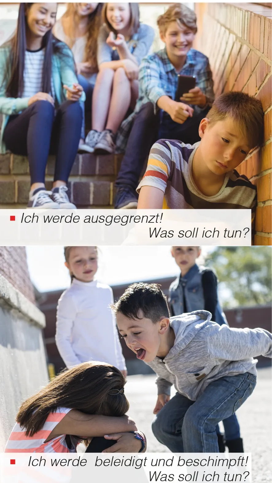 „Was mache ich, wenn ich beleidigt werde? Was mache ich, wenn mir jemand etwas wegnimmt? Was tue ich gegen Ausgrenzung und Mobbing? Wie schlichte ich einen Streit?“ Gewalt hat viele Formen. Nicht immer wird geschlagen, oft wird geschubst, berührt oder angefasst. Auch Worte und Gesten bedrohen und schüchtern ein. Dabei suchen die Täter keine Gegner sondern Opfer. Deshalb wird im Kids- WingTsun besonders an einer selbstsicheren Ausstrahlung und Körpersprache gearbeitet. In Rollenspielen üben die Kinder mit Mimik, Gestik und Sprache ihre Grenzen gewaltfrei zu verteidigen. Das so erlernte sichere Auftreten schafft Selbstbewustsein und erhöht somit die Chance, eine Konfliktsituation sicher und selbstbestimmt zu lösen. Erst wenn dies alles nicht ausreicht und die Angriffe des Gegners körperlich werden, kommt körperliche Gewalt als Verteidigung zum Einsatz. Dies führt zum 3.Unterrichtsziel: der Selbstverteidigung. Dies führt zum 3.Unterrichtsziel, der Selbstverteidigung.